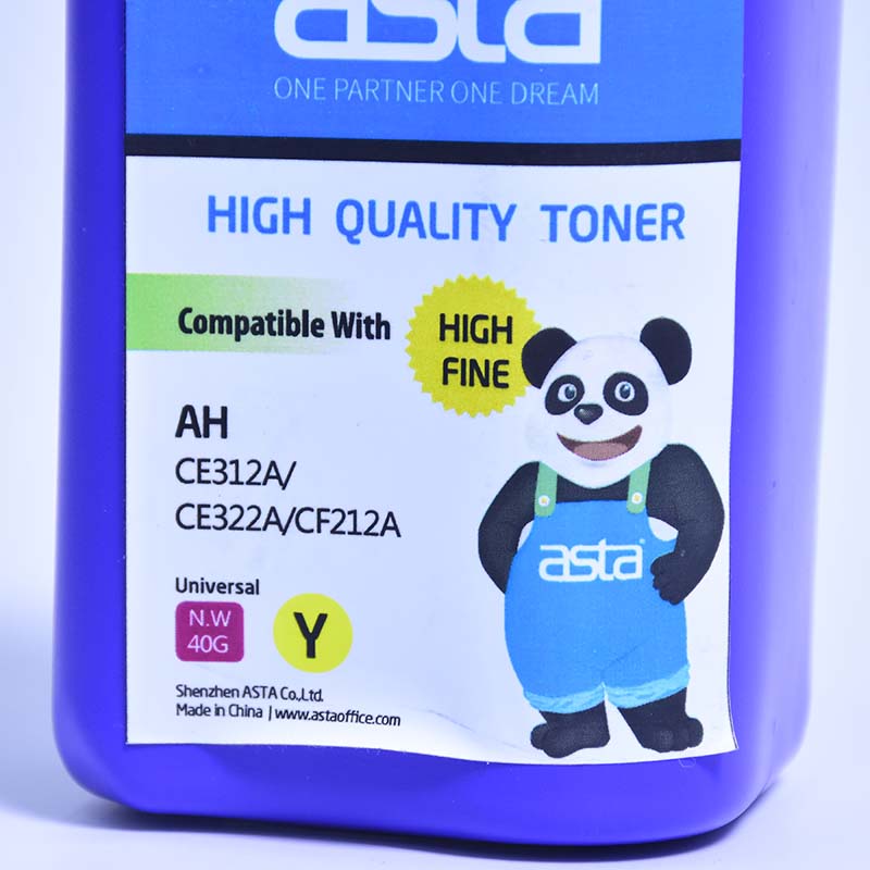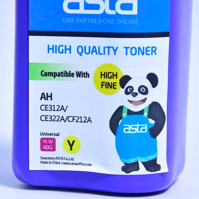 Uniwersal printerler üçin ASTA sary toner. Lexmark, Xerox, Konica Minolta, HP, Canon ýaly printerlere gabat gelýär. Ekologik taýdan arassa.CE312A/CE322/CE212