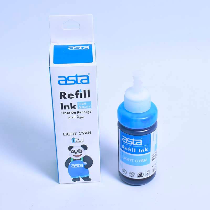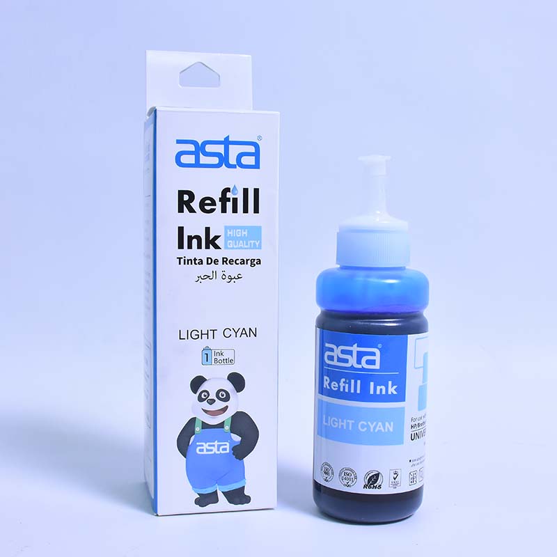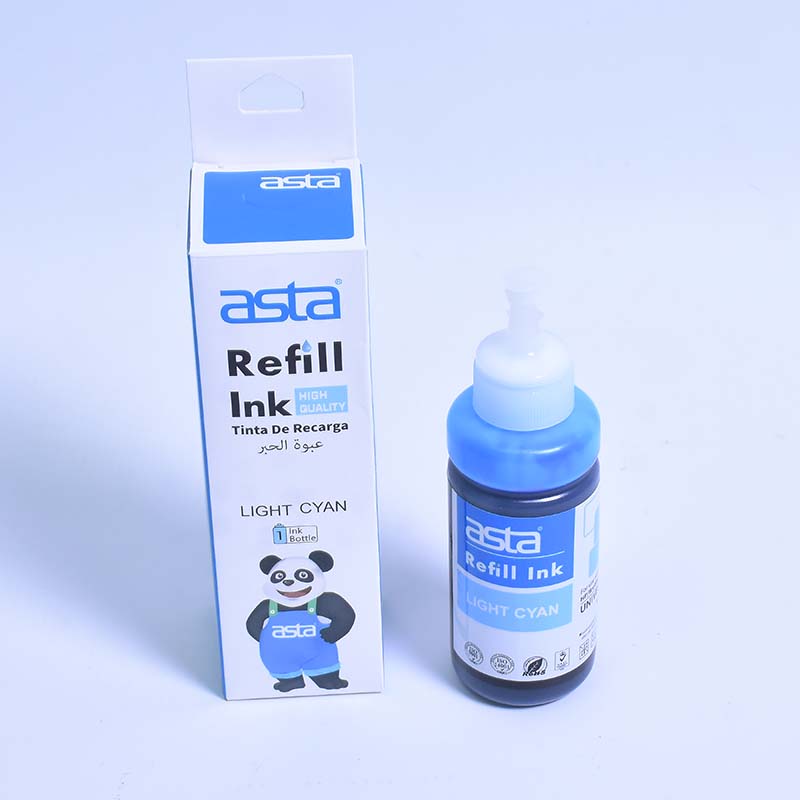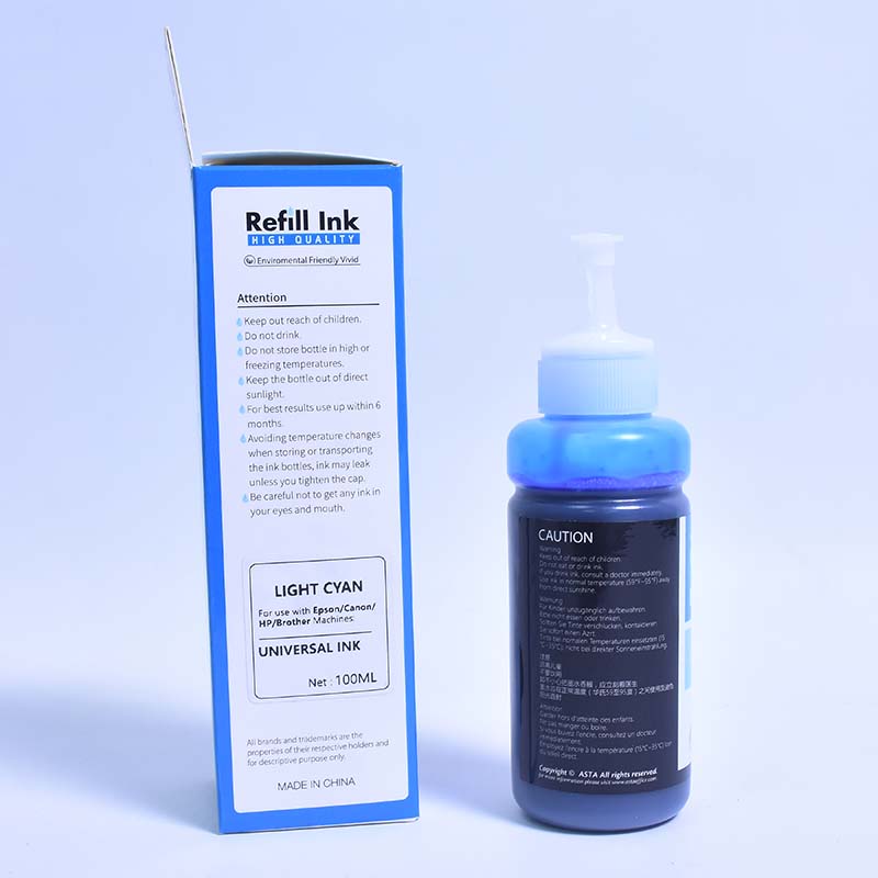 Uniwersal printerler üçin ASTA syýa. Epson, HP, Canon, Brother ýaly printerlere gabat gelýär. Ekologik taýdan arassa.Refill Ink light cyan (açyk gök)reňkli syýa