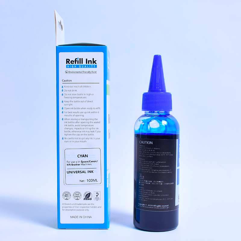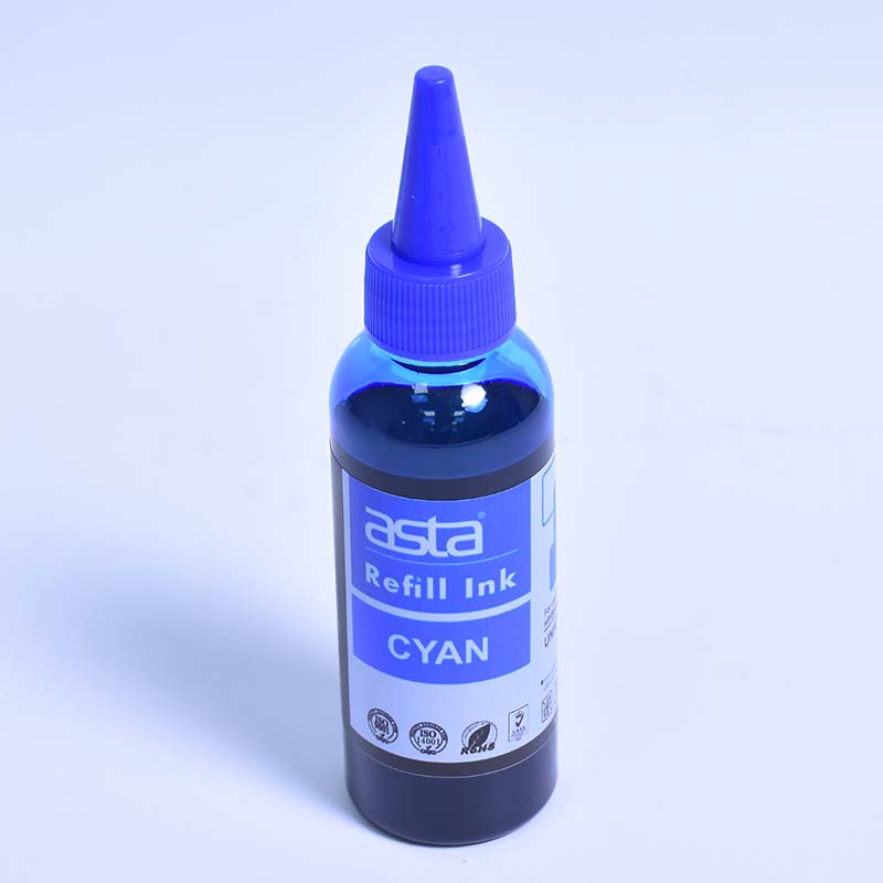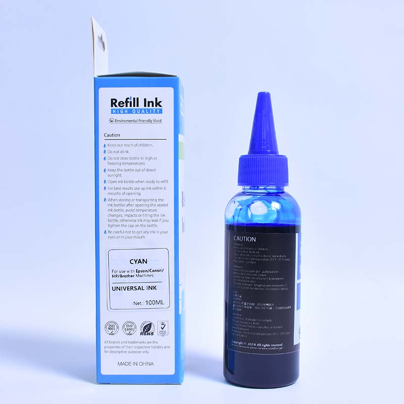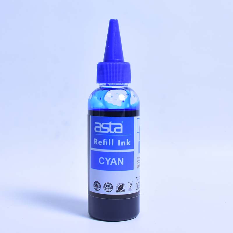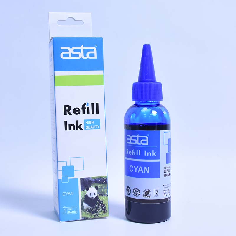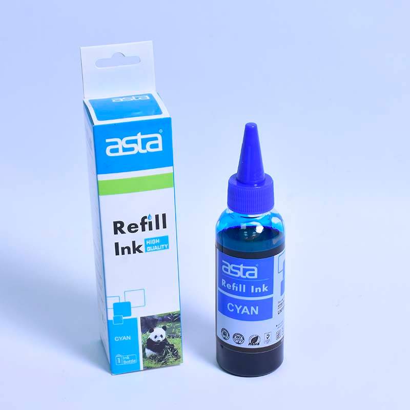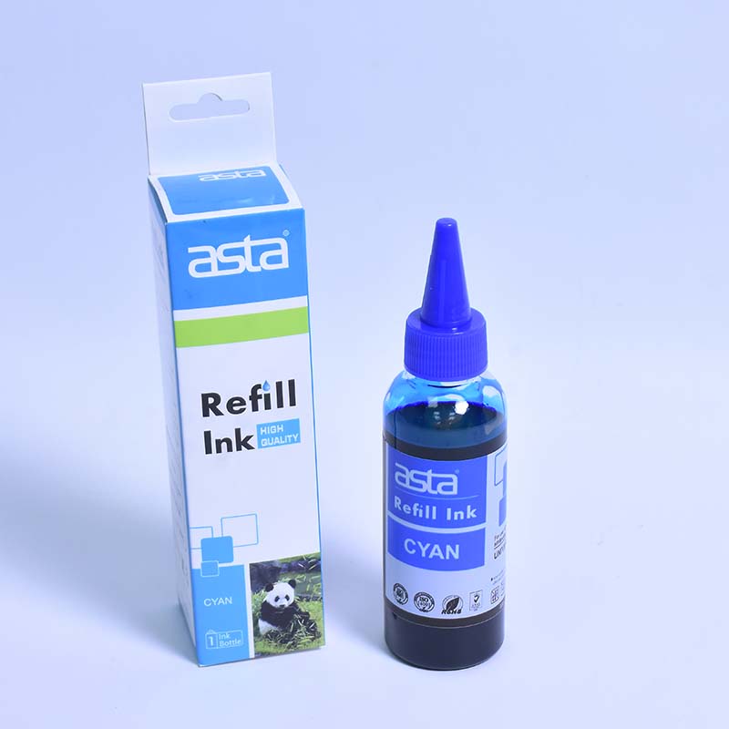 Uniwersal printerler üçin ASTA syýa. Epson, HP, Canon, Brother ýaly printerlere gabat gelýär. Ekologik taýdan arassa.Refill Ink cyan (gök) reňkli syýa