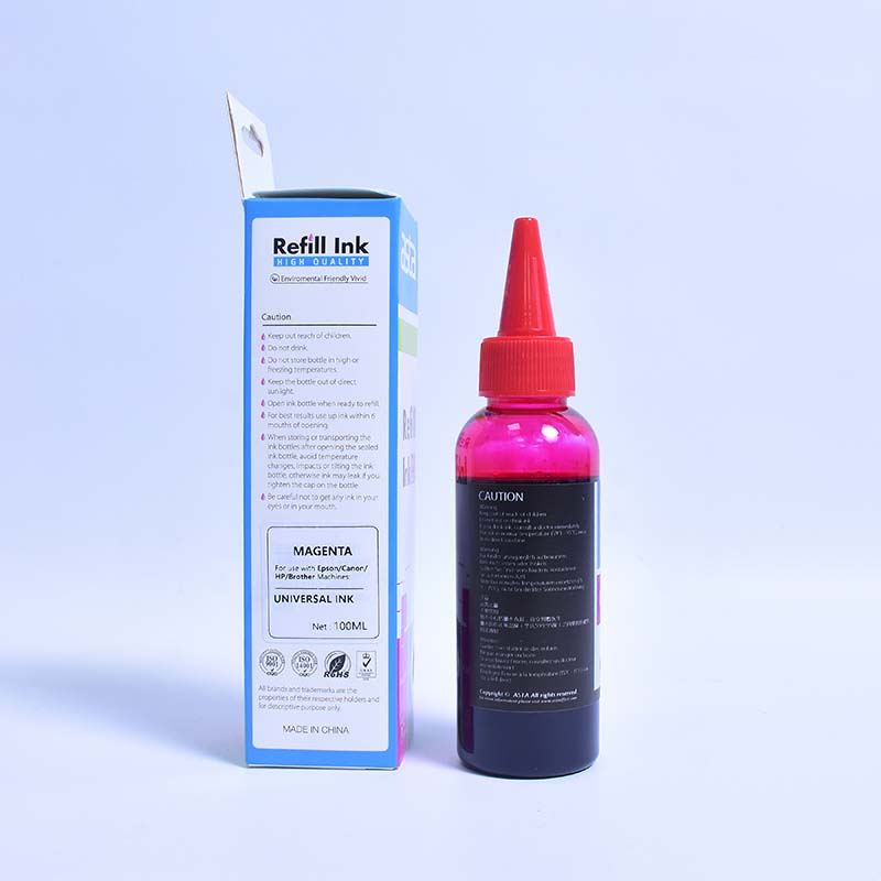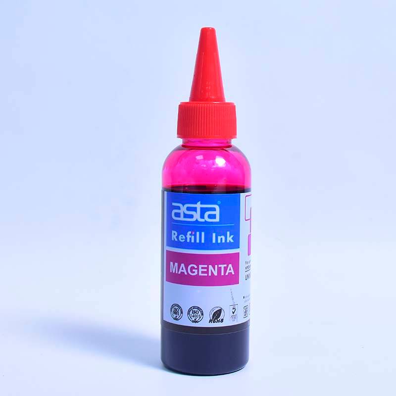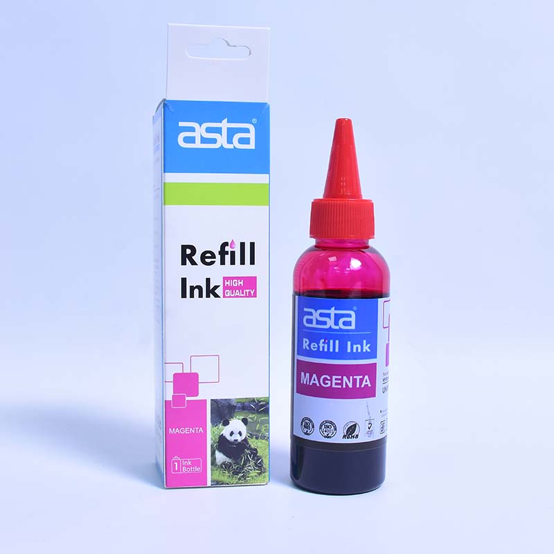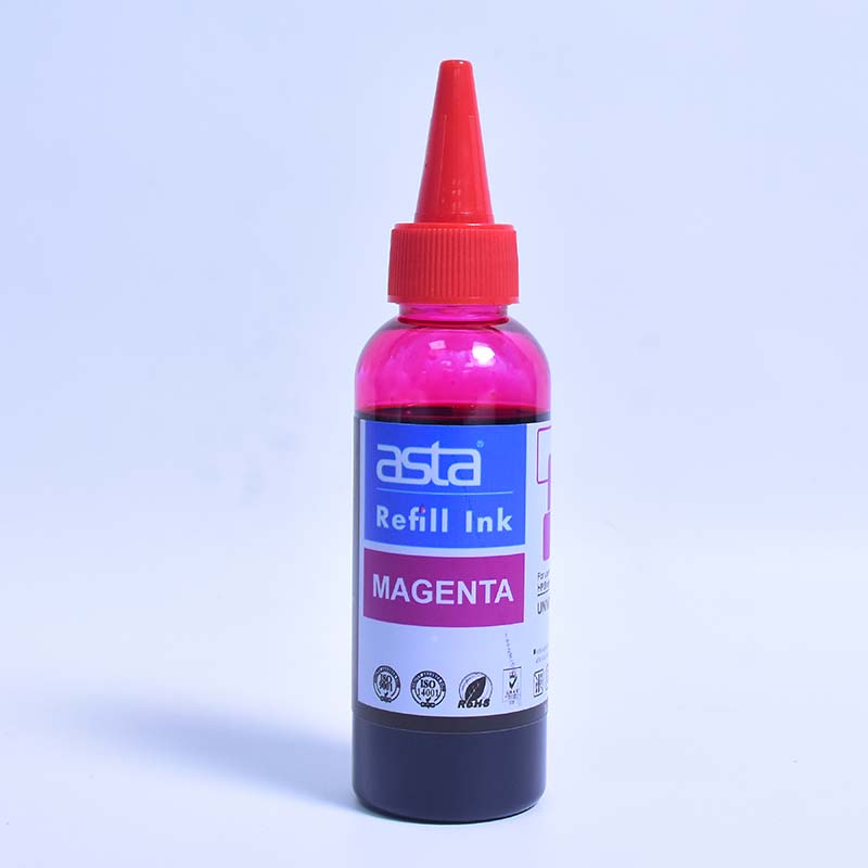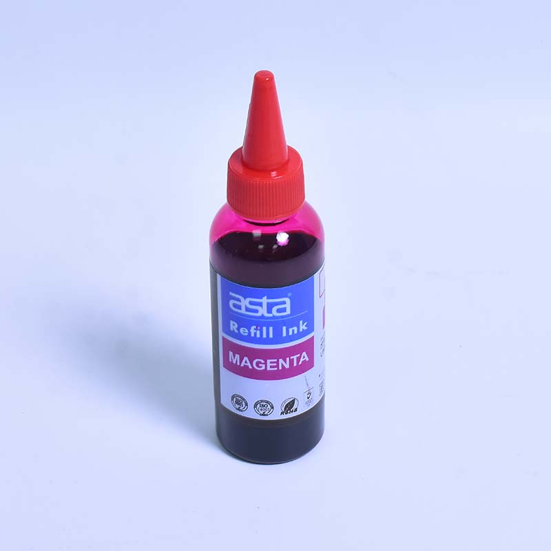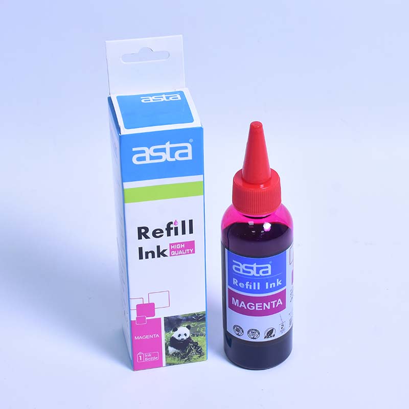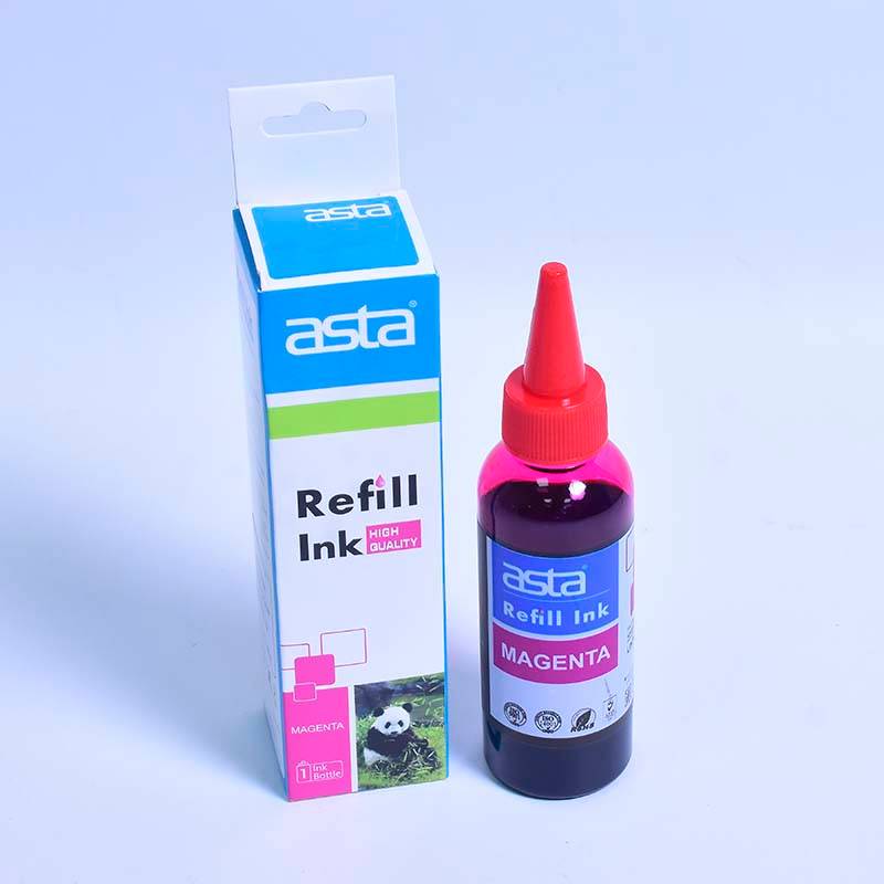 Uniwersal printerler üçin ASTA syýa. Epson, HP, Canon, Brother ýaly printerlere gabat gelýär. Ekologik taýdan arassa.Refill Ink magenta (gülgüne) reňkli syýa
