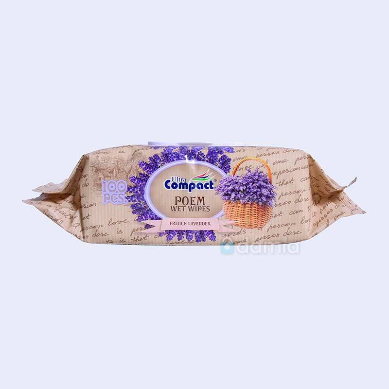 • Aýratynlyklary: Çygly Salfetkalar Compact Poem Wet Wipes French Lavender— Deriňizi islendik ýerde, islän wagtyňyz arassalamagyň amatly we arassaçylyk usuly. Süpürgiçler ýumşak arassalaýjy losýona siňdirilýär, bu bolsa gyjyndyrma döretmezden hapany netijeli aýyrýar.