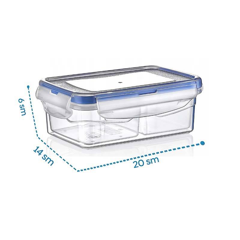 • Aýratynlyklary: Iýmit bilen aragatnaşyk üçin ygtybarly hem howpsuz iýmit derejeli plastmassa. 1 litrlik model, dürli önümleri holodilnikde saklamak ýa-da günortanlyk nahary alyp barmak üçin ähliumumy çözgütdir. Ygtybarly gapak berk saklamagy üpjün edýär, suwuk zatlaryň syzmagynyň öňüni alýar we iýmitleri täze saklaýar.