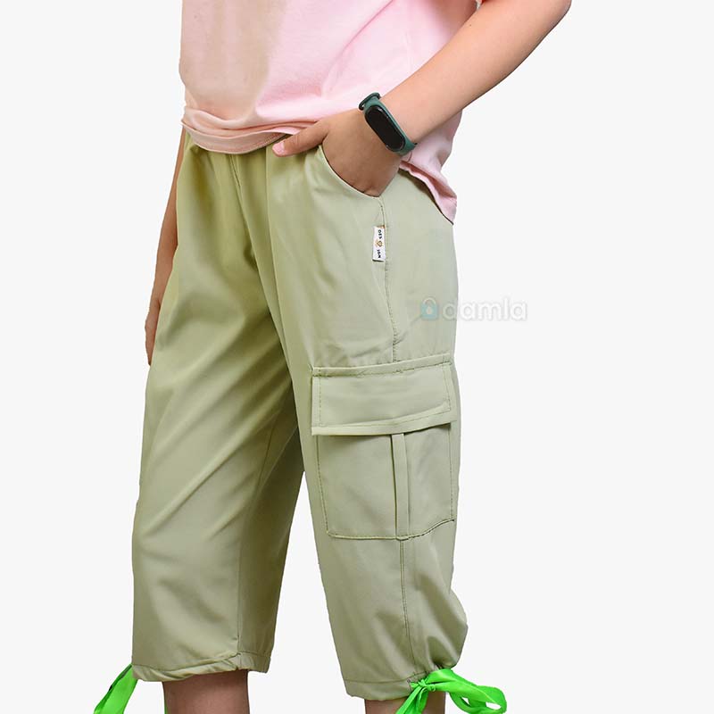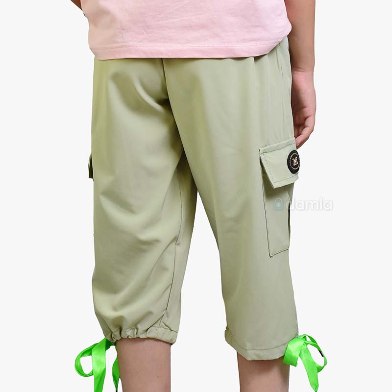 • Aýratynlyklary: Gyz çagalar üçin açyk ýaşyl reňkli şortik. Çalt gurayan, ýeňil mata. Bili rezinli we şortigyň aşagynda ýaşyl reňkli lenta bilen bezelen. Şortigyň gyrasynda bezelen jübüleri bar. Dynç alyşda, deňizde we öýde gündelik geýmäge bolýan şortik.
