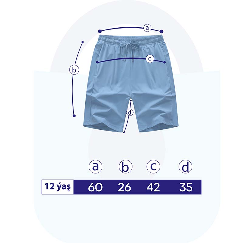 • Aýratynlyklary: Gyz çagalar üçin açyk mawy reňkli şortik. Çalt gurayan, ýeňil mata. Bili rezinli we şortigyň aşagynda gülgüne reňkli lenta bilen bezelen. Şortigyň gyrasynda bezelen jübüleri bar. Dynç alyşda, deňizde we öýde gündelik geýmäge bolýan şortik.