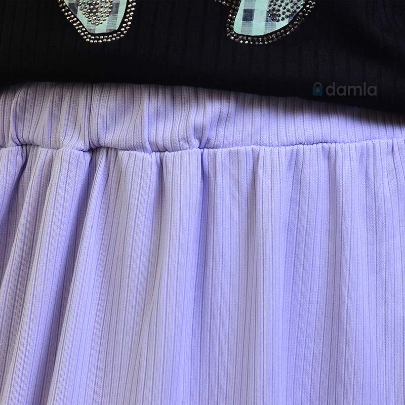 • Aýratynlyklary: Gyzlaryň tomusky açyk mawy reňkli ýubkasy, yssy tomus üçin iň amatly warianty dem alýan materialdan tikilýär. Ýubkanyň bili rezinli. Eteginiň iki gyrasy dilik görnüşde. Dynç alyşda we gündelik geýmek üçin rahat hem ykjam we amatly ýubka.