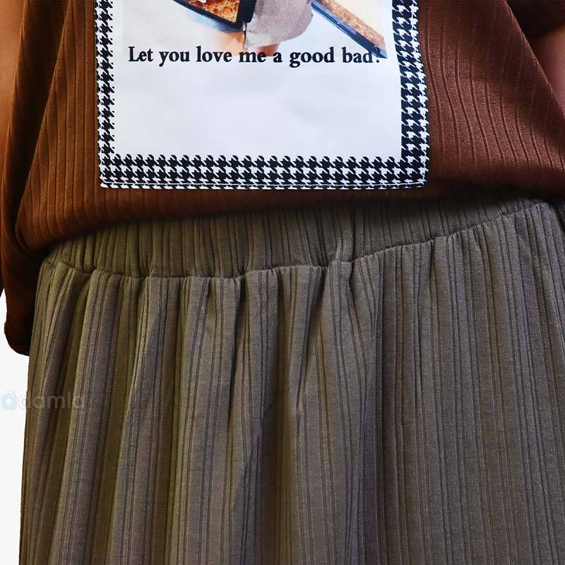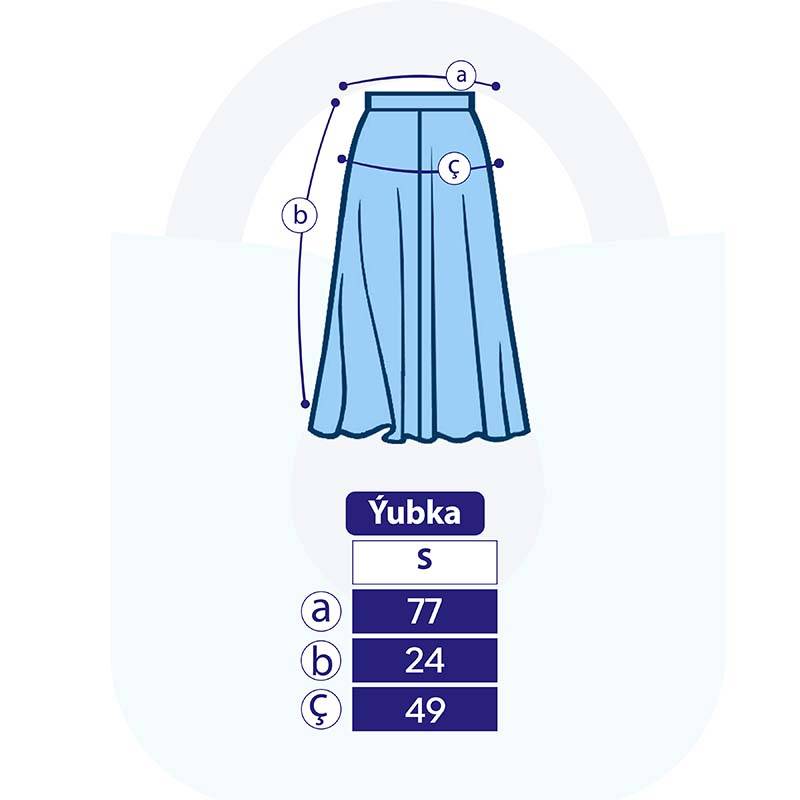 • Aýratynlyklary: Gyzlaryň tomusky goýy çal reňkli ýubkasy, yssy tomus üçin iň amatly warianty dem alýan materialdan tikilýär. Ýubkanyň bili rezinli. Eteginiň iki gyrasy dilik görnüşde. Dynç alyşda we gündelik geýmek üçin rahat hem ykjam we amatly ýubka.