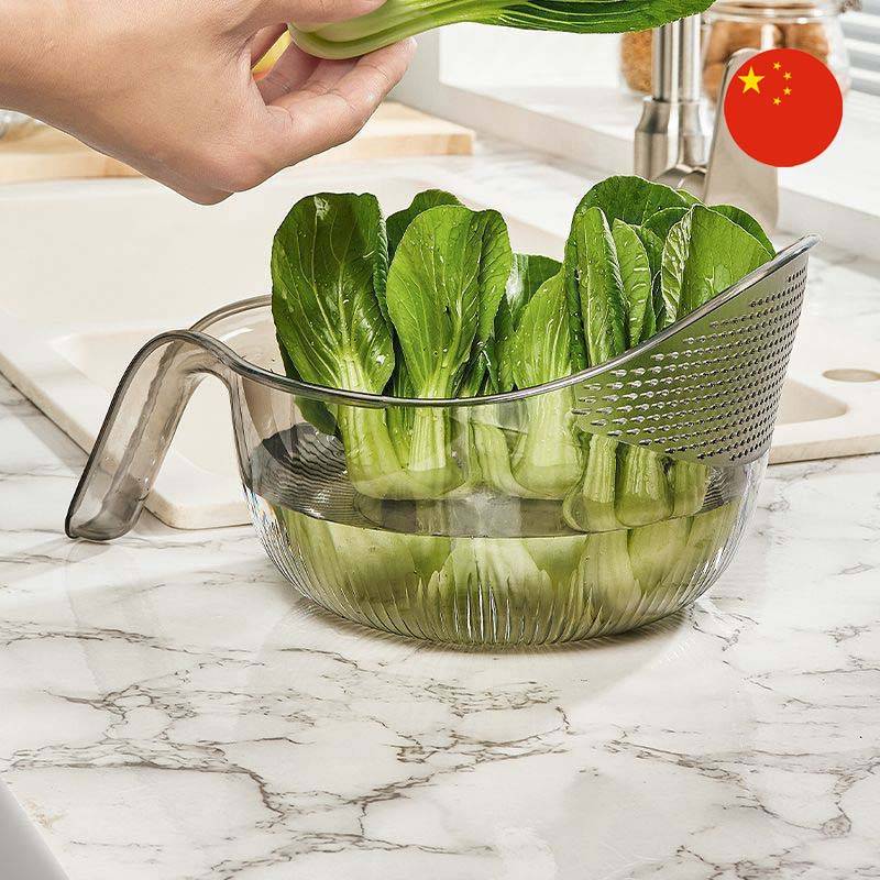 • Aýratynlyklary: Hem ýuwmak üçin çuňňur jam, hem-de süzgüç bir gapda jemlenen. Bir tarapynda ýerleşen ownuk deşikleri suwuň aňsatlyk bilen akyp gitmegini üpjün edýär. Tutawajy gaby saklamaga we ony egmek arkaly suwy dökmän aňsatlyk bilen süzmäge kömek edýär.