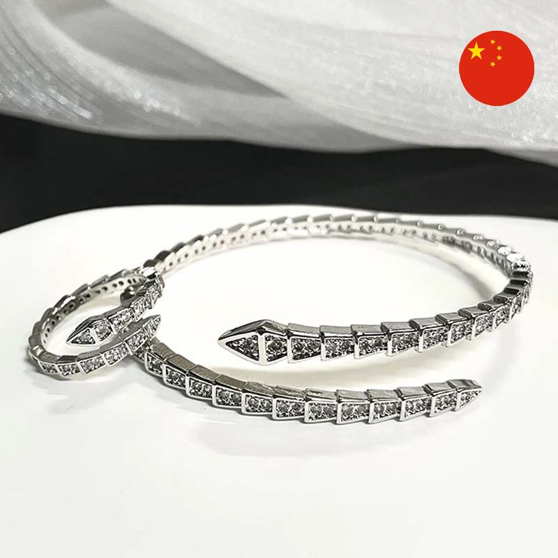 • Aýratynlyklary: Bir komplektde bilezik we ýüzük bar. Hem bilezik, hem-de ýüzük, ýylanyň hereketini gaýtalaýan gurluşa eýe, bütin ýeri parlak gaşlar bilen bezelen. Bilezigiň we ýüzügiň açyk dizaýny olaryň barmaga we bilege näziklik bilen aýlanmagyny üpjün edýär.