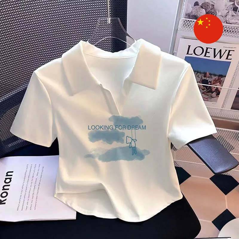 • Aýratynlyklary: Zenanlar üçin kelte ýeňli we ýakaly bolan ak batnik. Döşünde buludyň yzy we Looking for dream ýazgy bar.