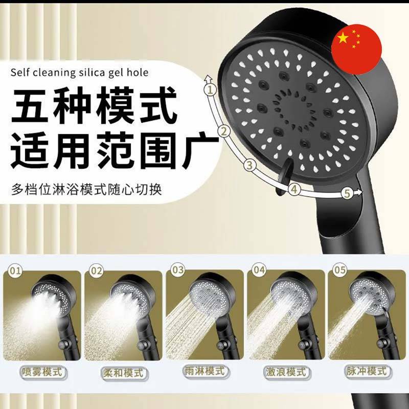 • Aýratynlyklary: Köpugurly duş kellesi gara reňkde. 5 pürküji reesimi, öz-özüni arassalaýan silikon burunlary. 2 metrlik şlangasy we saklaýjysy bar. Basyş astynda suw üpjünçiliginiň 6 görnüşi bilen kämilleşdirilen model. "