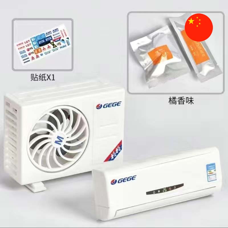 • Aýratynlyklary: Howany yslandyrmak funksiýaly kondisioneriň miniatýura modeli (ak reňk). Toplumda bezeg üçin nakleýkalar toplumy we apelsin ysly aromatiki paketjikler bar. Iş stoluny, awtoulagy bezemek ýa-da gülkünç suwenir hökmünde ideal.