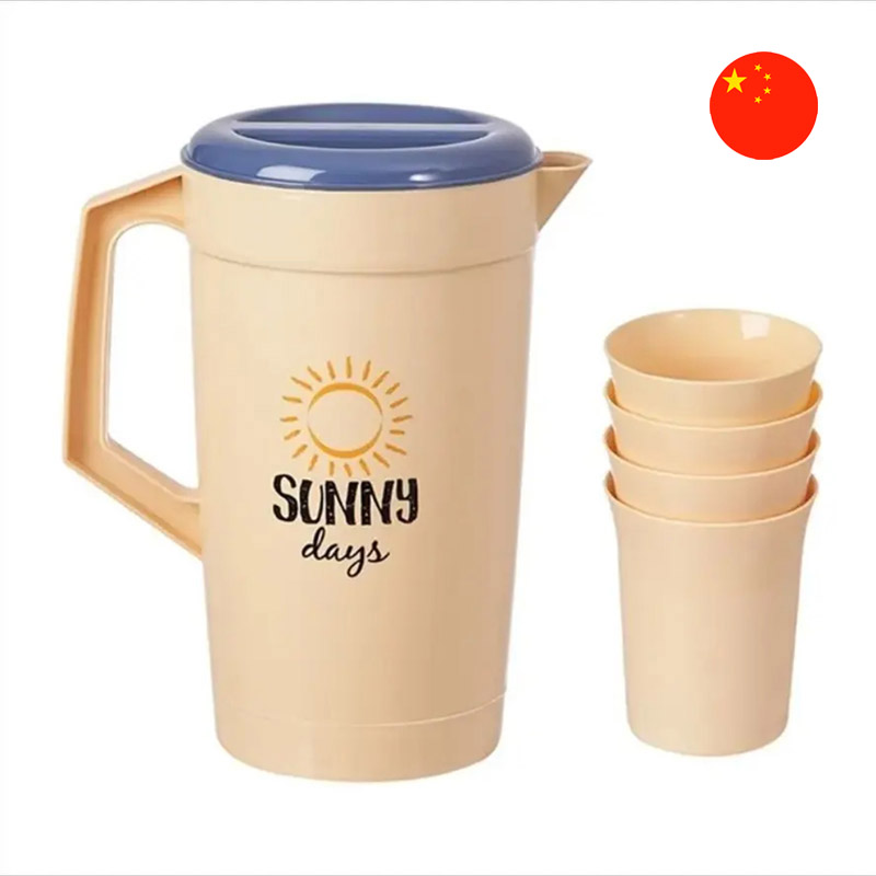 • Aýratynlyklary: Aşhana ajaýyp bezegine öwrüljek süýji we amaly stakanly grafin. Onuň näzik sary reňki we üstündäki "Sunny days" diýen ýazgyly bulut suraty tomus paslynyň aladasyz, şadyýan keýpini döredýär. Sowuk içgileri, limonady, morsy ýa-da kompoty hödürlemek üçin iň amatlydyr.