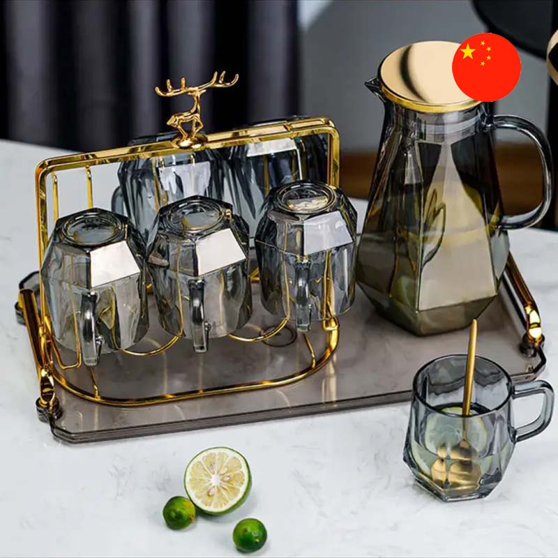 • Aýratynlyklary: Aşhana ajaýyp bezegine öwrüljek süýji we amaly podnos, grafin we 6 sany bokal. Gara reňki grafin we bokal. Sowuk içgileri, limonady, morsy ýa-da kompoty hödürlemek üçin iň amatlydyr.