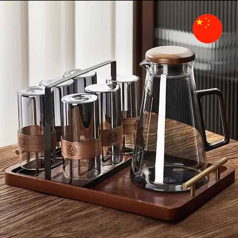 • Aýratynlyklary: Aşhana ajaýyp bezegine öwrüljek we amaly podnos, grafin we 6 sany bokal. Gara reňki grafin we bokal. Sowuk içgileri, limonady, morsy ýa-da kompoty hödürlemek üçin iň amatlydyr.