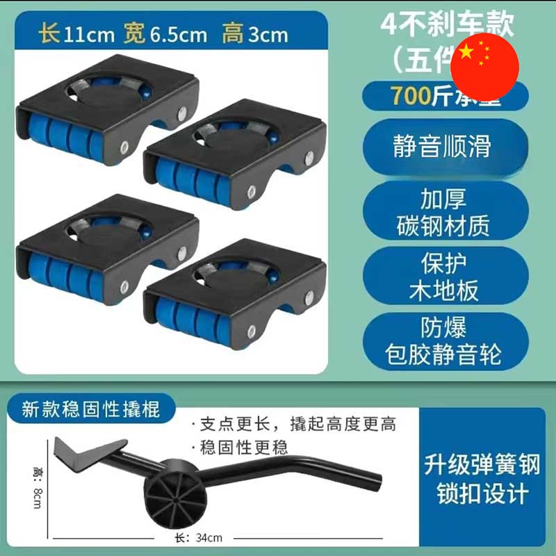 • Aýratynlyklary: Mebeliň we iri durmuş tehnikasynyň ýerini aňsatlyk bilen üýtgetmek üçin özboluşly toplum. Toplumda: sessiz tekerli 4 sany tagt-araba we götermek üçin ryçag bar. Ryçag predmeti aňsatlyk bilen ýokary galdyrmaga mümkinçilik berýär, tekerjikli tagtlar bolsa ony güýç sarp etmezden we pola zeper ýetirmezden süýşürmäge kömek edýär. Arassalamak we abatlaýyş işleri üçin ideal çözgüt.