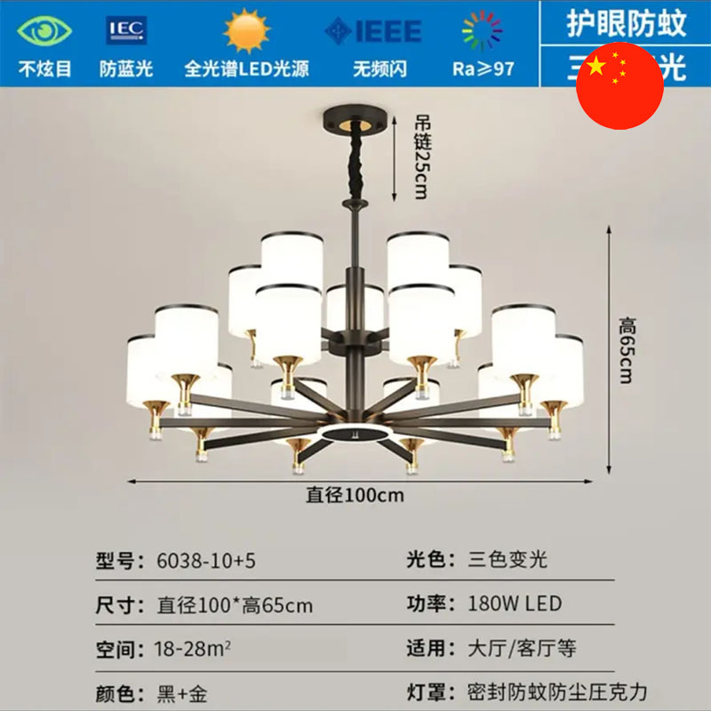 • Aýratynlyklary: 15 sany potolokly ägirt uly we döwrebap lýustra uly zalyň, myhman otagynyň ýa-da giňiş nahar otagynyň kaşaň bezegine öwrüler. Häzirki zaman dizaýnynyň we öňdebaryjy yşyklandyryş tehnologiýalarynyň utgaşmasy ony diňe bir owadan däl, eýsem köp funksiýaly hem edýär.