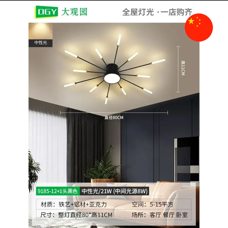 • Aýratynlyklary: Täsirli lýustra interýeriňize döwrebap we dinamiki görnüş berip, onuň aýdyň aksiýasyna öwrüler. Daşa ýaýraýan şöhleler görnüşindäki dizaýn baýramçylyk we özboluşlylyk duýgusyny döredýär.