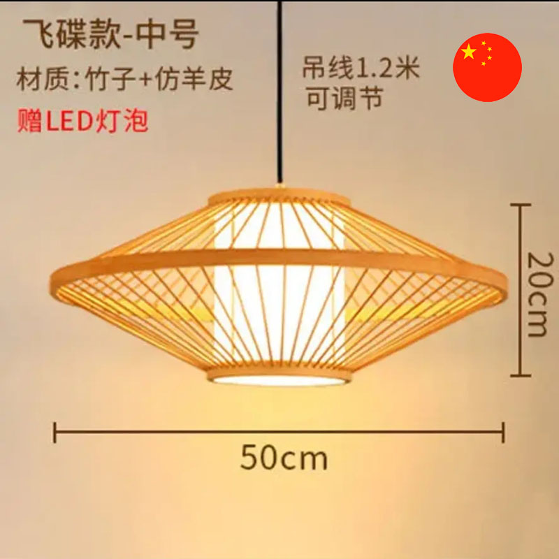 Aýratynlyklary: Asma çyra gündogar, rustikal ýa-da ekostil interýeri üçin kämil goşundy bolar. Onuň bambukdan elde ýasalan abajury we goýun derisine meňzedilen özboluşly dizaýny, jaýyň içinde ýyly, oňaýly we rahatlandyryjy atmosfera döreder.