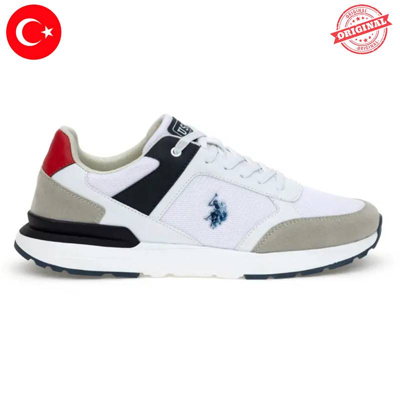 • Aýratynlyklary: U.S. Polo Assn. original krossowkalary gündelik stil we sport gezelençleri üçin ideal ýagdaýda laýyk gelýär. Olar ak, çal, gök we gyzyl reňkleriň kombinasiýasynda ýerine ýetirilen. Modeliň ajaýyp amortizasiýany üpjün edýän uly göwrümli (massiw) padoşybar. Gapdal tarapynda brendiň firma nyşany — at üstündäki çapyksuwar ýerleşdirilen.