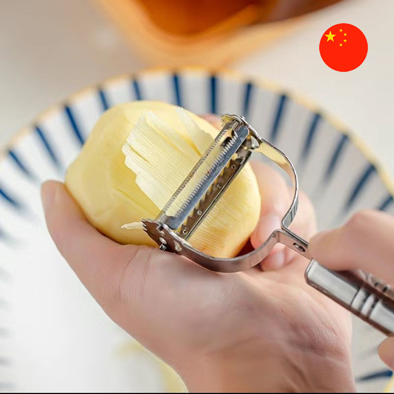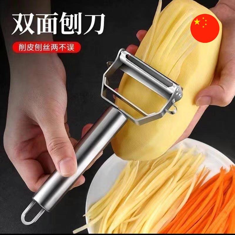• Aýratynlyklary: Poslamaýan polatdan ýasalan gyrgyç-arassalaýjy. Iki taraply dizaýny gök we miwe önümlerini gabygyndan arassalamaga we inçe saman şekilli dogramaga mümkinçilik berýär. Salatlary, koreýçe käşirleri we beýleki naharlary taýýarlamak üçin ideal.