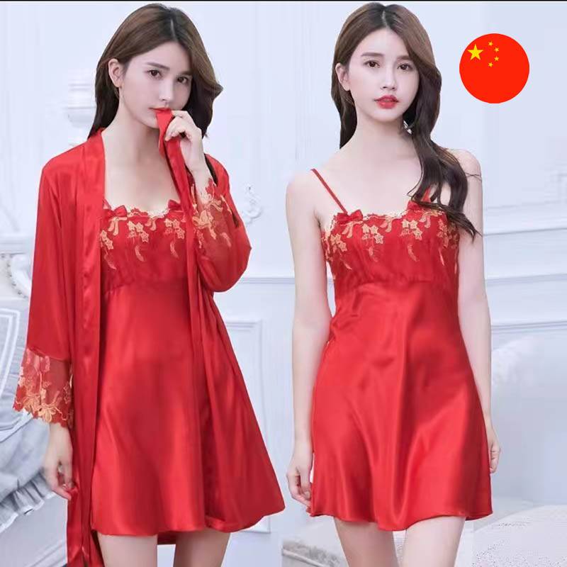 • Aýratynlyklary: Ajaýyp gijeki eşik we ýeňil dony öz içine alýan ajaýyp uky toplumy. Beden atlas matasyna ýumşak we ýakymly bolup, ajaýyp rahatlyk we ýeňillik berýär. Gijeki eşigiň korpusyna we donuň ýeňlerine krujkalar özüne çekijilik we aýallyk goşýar.
