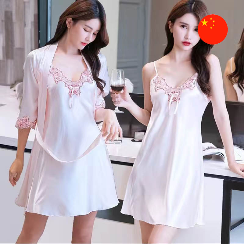 Aýratynlyklary: Ajaýyp gijeki eşik we ýeňil dony öz içine alýan ajaýyp uky toplumy. Beden atlas matasyna ýumşak we ýakymly bolup, ajaýyp rahatlyk we ýeňillik berýär. Gijeki eşigiň korpusyna we donuň ýeňlerine krujkalar özüne çekijilik we aýallyk goşýar.