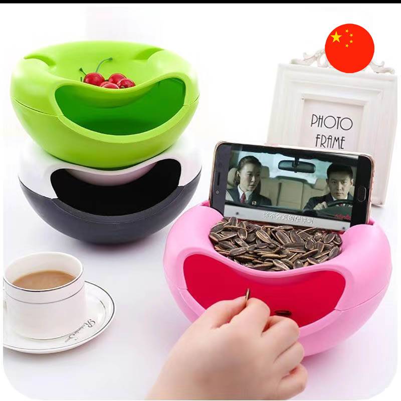 • Aýratynlyklary: Telefon üçin köp wezipeli tabakly podstawka, nahar söýüjiler üçin ajaýyp aksessuar. Iki gatly bu tabak, halaýan naharlaryňyzdan filmlere ýa-da teleseriallara tomaşa etmezden lezzet almaga mümkinçilik berýär. Ýokarky bölüme hoz, tohum, süýji ýa-da miweleri goýup bilersiňiz, aşaky böleginde bolsa gabyk ýa-da süýji önümleri ýaly zibilleri aňsatlyk bilen taşlap bilersiňiz. Üýtgeşik dizaýn, ony smartfonyňyz üçin stend hökmünde ulanmaga mümkinçilik berýär.