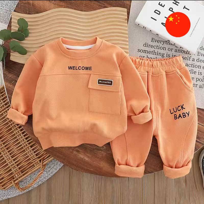 • Aýratynlyklary: Oglan çagalar üçin çagalar kostýumy gündelik eşikler üçin iň amatly wariantdyr. Toplumda "WELCOME" ýazgyly ýumşak köýnek we amatly sport balak bar. Kostýum beden materiallaryna ýakymly bolup, gezelenç, oýun we dynç almak üçin ajaýyp saýlawy edýär.