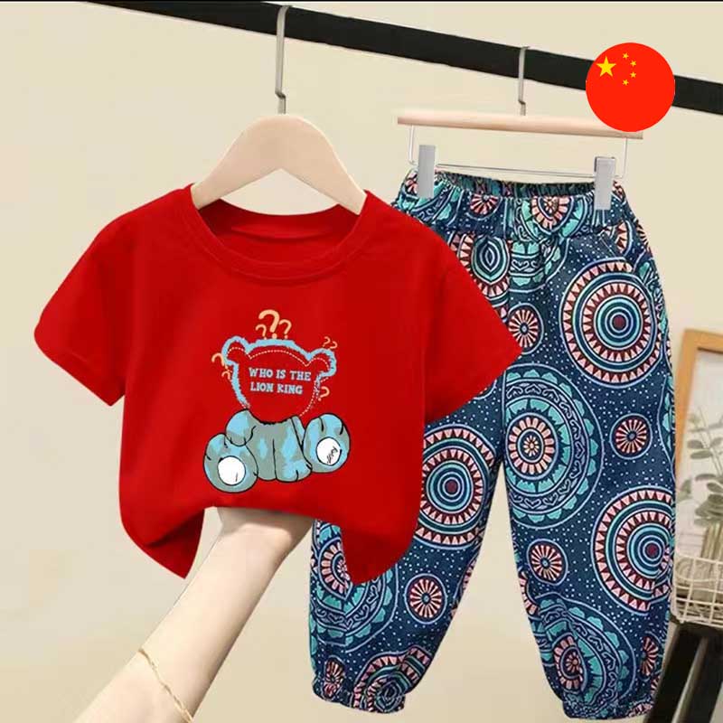Aýratynlyklary: Çagalaryň komplekt eşigi, çagaňyz üçin stiliň we rahatlygyň ajaýyp utgaşmasydyr. Gyzykly nagyş we ýazgyly açyk futbolka, oýna oýnawaçlyk goşýar. Etnik nagyşly we ýumşak eşikli ýeňil balak, hereketi çäklendirmeýär we topuklardaky elastik çeňňekler amatly ýer berýär. Bu toplum tomus gezelençleri, işjeň oýunlar we dynç almak üçin ajaýyp.