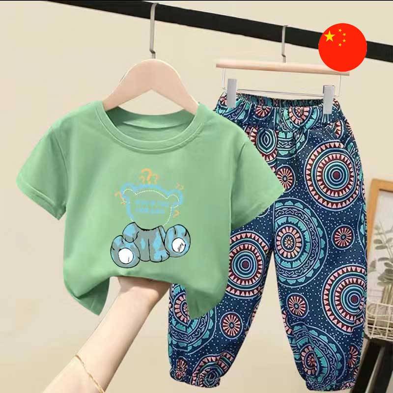 Aýratynlyklary: Çagalaryň komplekt eşigi, çagaňyz üçin stiliň we rahatlygyň ajaýyp utgaşmasydyr. Gyzykly nagyş we ýazgyly açyk futbolka, oýna oýnawaçlyk goşýar. Etnik nagyşly we ýumşak eşikli ýeňil balak, hereketi çäklendirmeýär we topuklardaky elastik çeňňekler amatly ýer berýär. Bu toplum tomus gezelençleri, işjeň oýunlar we dynç almak üçin ajaýyp.