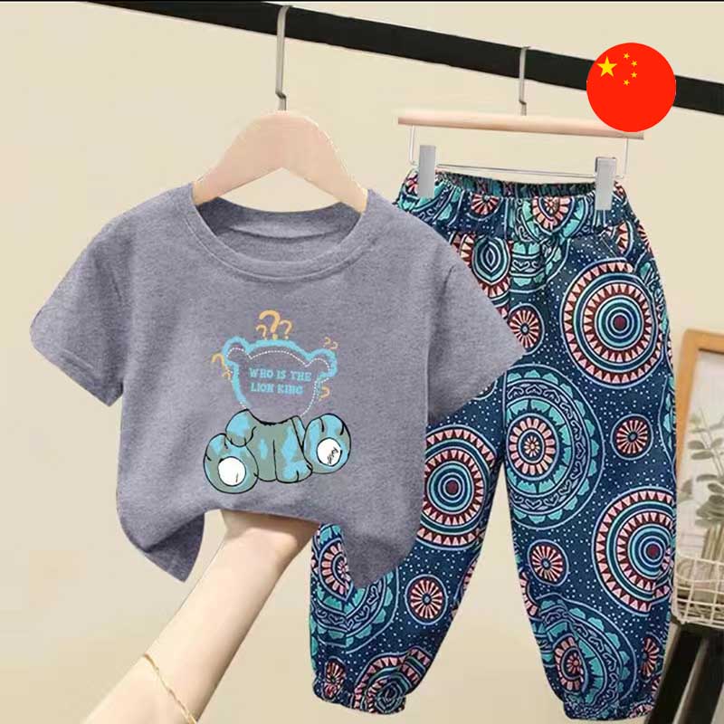 Aýratynlyklary: Çagalaryň komplekt eşigi, çagaňyz üçin stiliň we rahatlygyň ajaýyp utgaşmasydyr. Gyzykly nagyş we ýazgyly açyk futbolka, oýna oýnawaçlyk goşýar. Etnik nagyşly we ýumşak eşikli ýeňil balak, hereketi çäklendirmeýär we topuklardaky elastik çeňňekler amatly ýer berýär. Bu toplum tomus gezelençleri, işjeň oýunlar we dynç almak üçin ajaýyp.