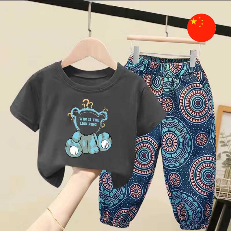 Aýratynlyklary: Çagalaryň komplekt eşigi, çagaňyz üçin stiliň we rahatlygyň ajaýyp utgaşmasydyr. Gyzykly nagyş we ýazgyly açyk futbolka, oýna oýnawaçlyk goşýar. Etnik nagyşly we ýumşak eşikli ýeňil balak, hereketi çäklendirmeýär we topuklardaky elastik çeňňekler amatly ýer berýär. Bu toplum tomus gezelençleri, işjeň oýunlar we dynç almak üçin ajaýyp.
