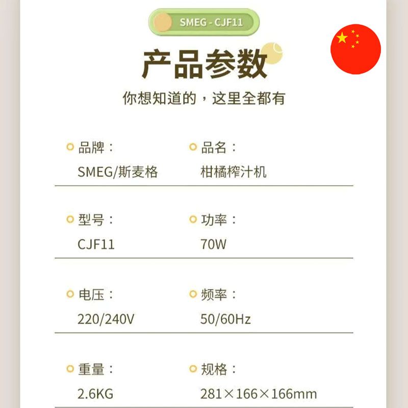 • Aýratynlyklary: Şireli, SMEG-iň rowaýata öwrülen retro dizaýnynyň we häzirki zaman işleýşiniň ajaýyp utgaşmasydyr. Gözelligi we hilini her jikme-jik bilýänler üçin döredildi. Ýönekeý el bilen dolandyrmagyň kömegi bilen apelsinlerden, limonlardan ýa-da greýpfrutlardan birnäçe minudyň içinde täze şiresi ýasap bilersiňiz. 50-nji ýyllardaky ajaýyp beden, çylşyrymlylygy we stili goşup, islendik aşhanada ajaýyp aksent bolar.