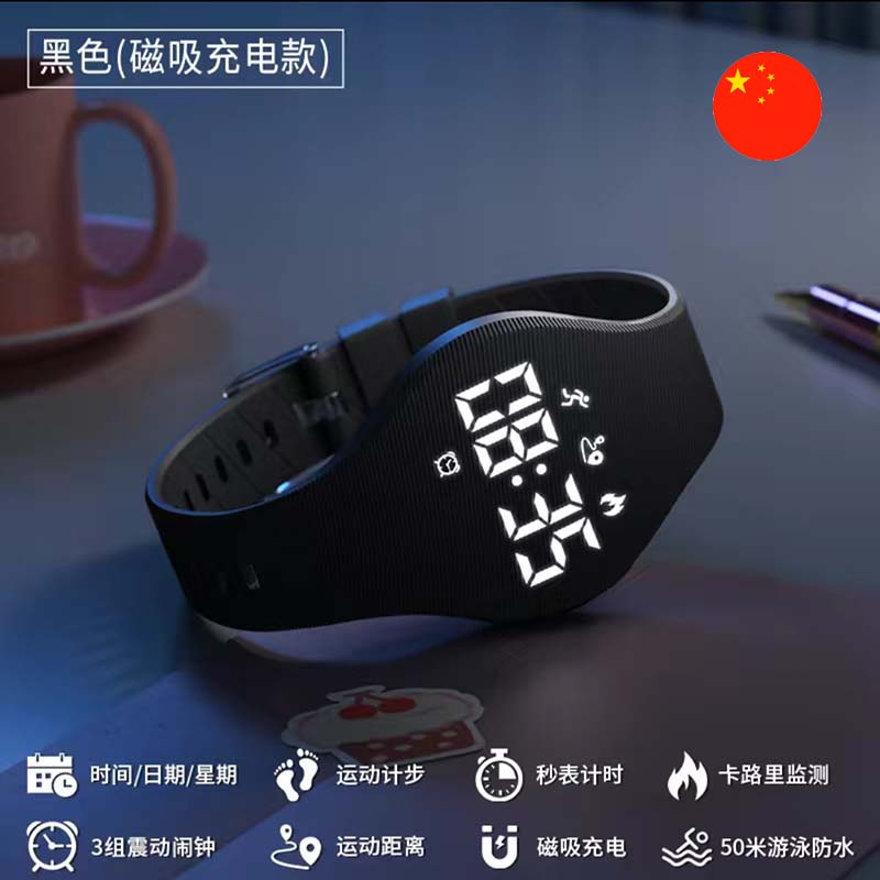 Aýratynlyklary: Owadan LED displeýli ajaýyp suw geçirmeýän sagat. Wagty görkezmekden başga-da, köp peýdaly funksiýalar bilen üpjün edilendir: ädim, kaloriýa hasaplaýjy, sekundomer we budilnik. sagatň magnit zarýady bar, bu ulanmagy amatly edýär.