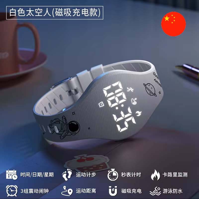 Aýratynlyklary: Owadan LED displeýli ajaýyp suw geçirmeýän sagat. Wagty görkezmekden başga-da, köp peýdaly funksiýalar bilen üpjün edilendir: ädim, kaloriýa hasaplaýjy, sekundomer we budilnik. sagatň magnit zarýady bar, bu ulanmagy amatly edýär.