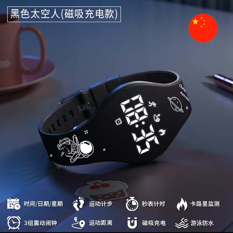 • Aýratynlyklary: Owadan LED displeýli ajaýyp suw geçirmeýän sagat. Wagty görkezmekden başga-da, köp peýdaly funksiýalar bilen üpjün edilendir: ädim, kaloriýa hasaplaýjy, sekundomer we budilnik. sagatň magnit zarýady bar, bu ulanmagy amatly edýär.