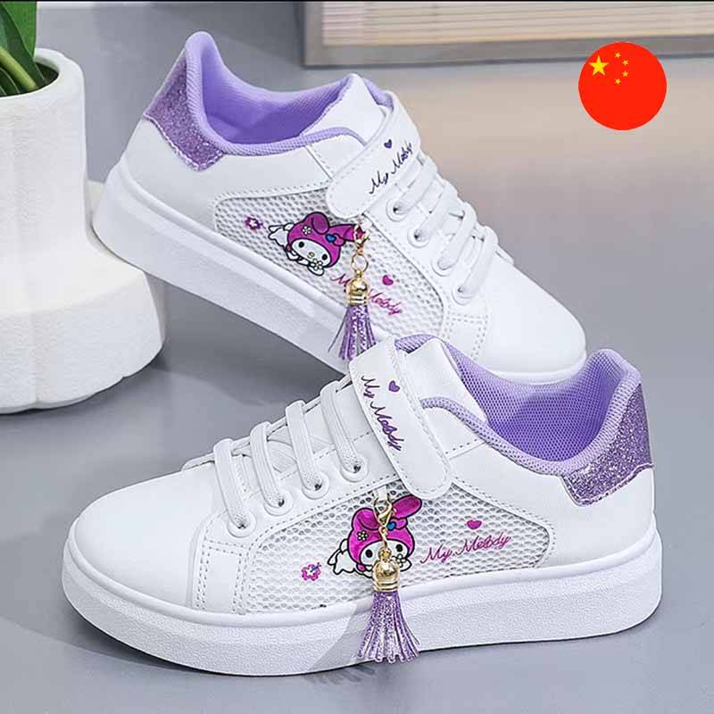 Aýratynlyklary: Meşhur Kuromi keşbini şekillendirýän ak krossowkalar gyzyňyz üçin iň gowy aýakgap bolar. Amatly berkidiji (lipuçka) baglar çalt we aňsat geýmäge mümkinçilik berýär.