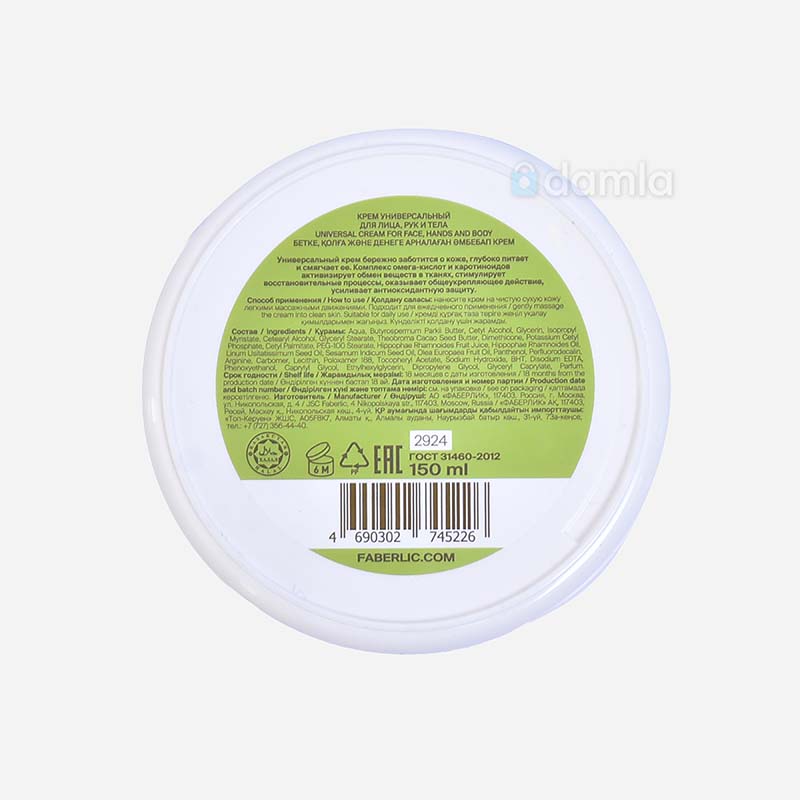 • Aýratynlyklary: Baý we täsirli formulanyň kömegi bilen Faberlic Zima Ultra iýmitlendiriji ýüzi, el we beden kremi deriňizi sowuklygyň guradyjy täsirlerinden nemlendirýär, iýmitlendirýär we goraýar. Ýüzüňize, elleriňize we tutuş bedeniňize ulanyp boljak bu köp maksatly krem deriňiziň ýumşak, ýylmanak we sagdyn bolmagyna kömek edýär.