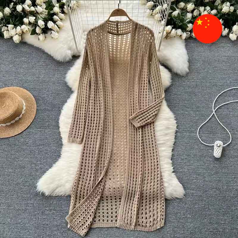 Aýratynlyklary: Zenanlar üçin ýeňil kardigan. Ol inçe we ažurly matadan dokalyp, ýaz-tomus lybaslary üçin has amatly edýär. Onuň giň biçüwi we dyzyndan aşak uzynlygy bar. Ol suwa düşülýän lybaslaryňyzy ýa-da tomusky köýnegiňizi gowy bezäp biler.