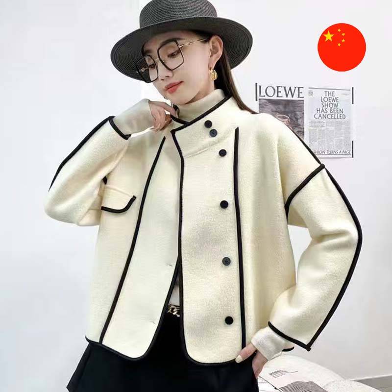 Aýratynlyklary: Nygmatly gysgaldylan kurtka. Model kontrast Gara gyralygy, beýik dik ýakalygy we ilikli. Döwrebap we nepis keşbi döretmek üçin ajaýyp bolar.