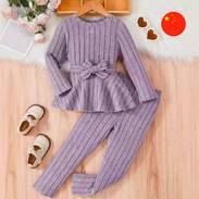 Aýratynlyklary: Bu açyk we amatly komplekt, basaly switerden we balakdan durýar. Ol ýyly saklaýan we ýakymly mata bolan rubçik trikotaždan dokalypdyr. Bilindäki owadan lenta, oňa özboluşlylyk berýär. Gezelenç we ajaýyp gündelik keşbi döretmek üçin iň gowy saýlawdyr.