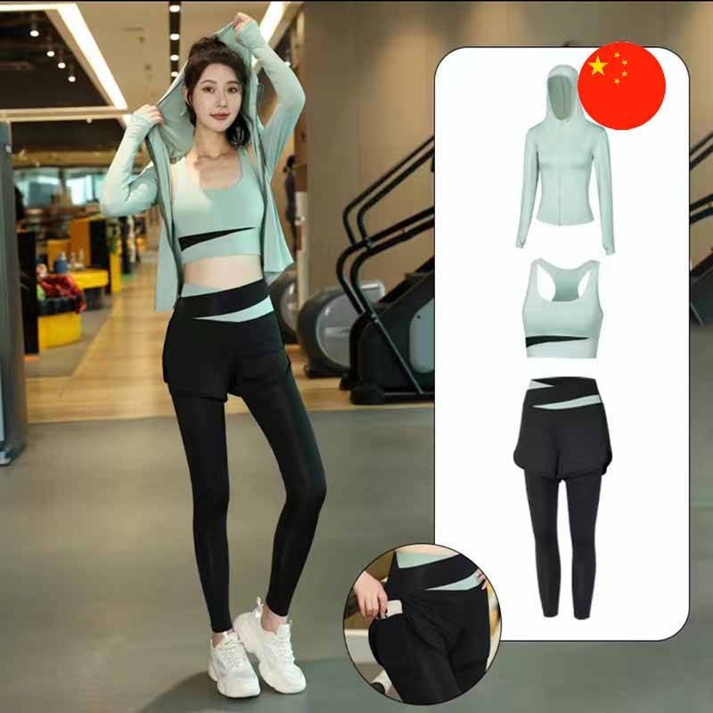 Aýratynlyklary: Bu ýokary materýally 3 bölekli sport toplumy, sport maşklaryny amatly we stilistik ýagdaýda ýerine ýetirmek üçin niýetlenendir.Toplumda uzyn sport balagy, sport býüstgalter,Uzyn ýeňli kapişonly spartiwkalary öz içine alýar.