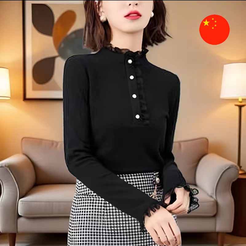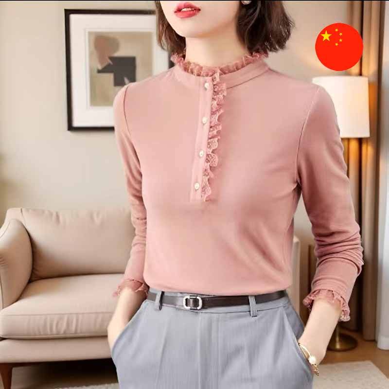 • Aýratynlyklary: Model rahatlygy üpjün edýän ýumşak trikotaž materýallardan ýasalýar. Onuň aýratynlygy, inçejik bürüşikleri we bezegli düwmeleri bar. Dik ýakasy bolsa stilistik aýratynlygy döredýär. Ýeňleriň manjetler hem tolkun görnüşli bezeg bilen bezelendir, bu bolsa keşbe goşmaça owadanlyk berýär.