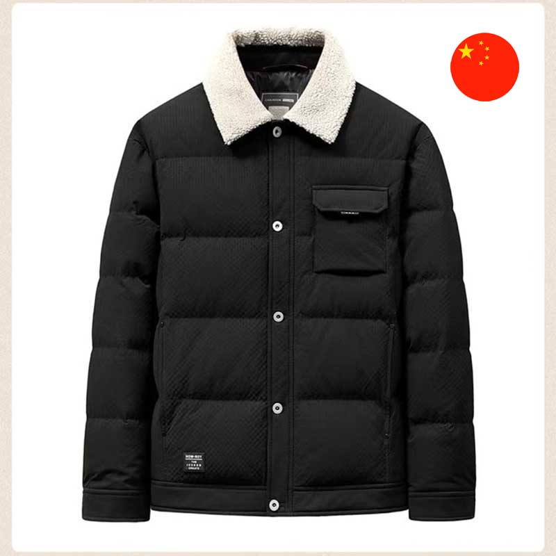 • Aýratynlyklary: Bu erkekler üçin gyşky kurtkasy, köýnek-kurtka ýaly döwrebap biçüwi (kroý) bilen kelte kurtka ýaly ýyly saklaýjylyk teploizolýasiýany özünde jemleýär.