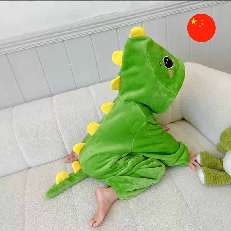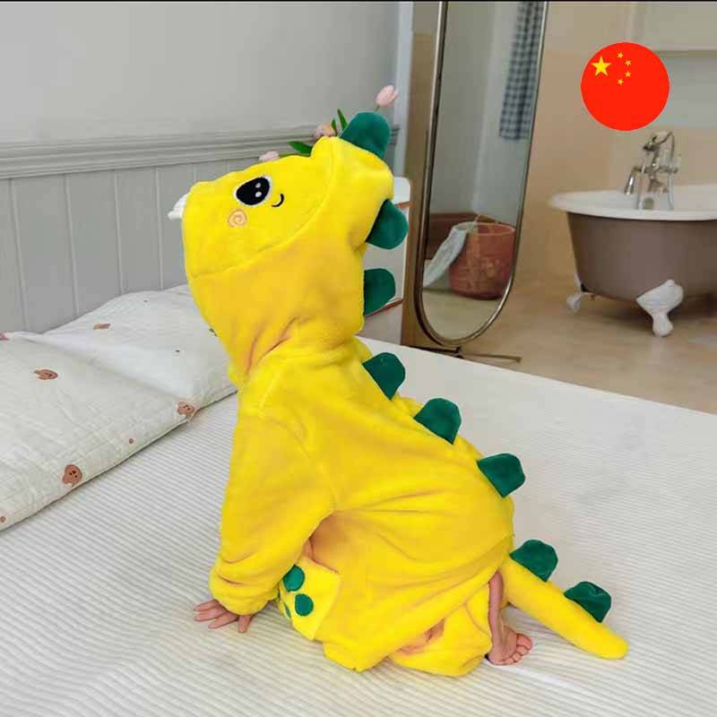 • Aýratynlyklary: Ýumşak we bitewi dinozawryň görnüşindäki kombinezon bitewi uly kostýum, ýyly iki taraplaýyn flisden ýasalan. Kostýumyň kapýuşonynyň we arkasynyň ugrunda bezeg üçin sary ýaý (greb), şeýle hem guýruk bar. Bu, öý üçin ideal pijama ýa-da çagalar ertirligi üçin maskarad kostýumydyr.