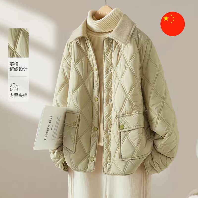 • Aýratynlyklary: Ýumşak reňkdäki stili demi-möwsümleýin (bahar-güýz) kurtka. Model giň biçüwde, ýaslanan ýakaly we düwme bilen berkidilýän görnüşde ýerine ýetirilendir. Içinde romb görnüşli tikin bilen berkidilen ýeňil ýylylyk saklaýjy (uteplitel) bar. Ýüzüne ýelmenen jübjülikler bar. Köp gatlakly gündelik keşpleri döretmek üçin örän amatlydyr.