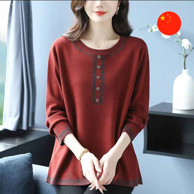 Aýratynlyklary: Ýumşak trikotaždan ýerine ýetirilen, owadan we giň biçüwli kroýly žemper. Modeliň aýratynlygy onuň döşünde ýerleşdirilen etniki ýa-da geometriki stildäki nepis, dikligine ýerine ýetirilen keşde bar. Rahat stilili gündelik görnüşi döretmek üçin ajaýyp saýlaw.