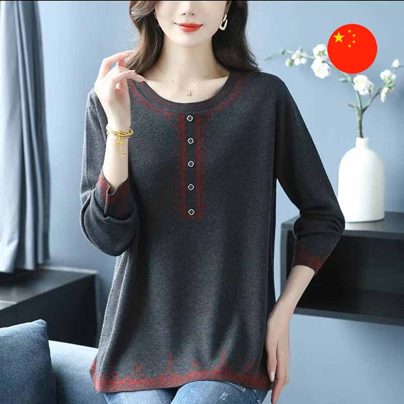 • Aýratynlyklary: Ýumşak trikotaždan ýerine ýetirilen, owadan we giň biçüwli kroýly žemper. Modeliň aýratynlygy onuň döşünde ýerleşdirilen etniki ýa-da geometriki stildäki nepis, dikligine ýerine ýetirilen keşde bar. Rahat stilili gündelik görnüşi döretmek üçin ajaýyp saýlaw.