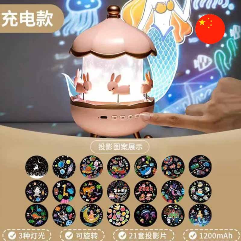 3 ýagtylandyryş režimi: Ideal gurşawy döretmek üçin üç sany ýagtylyk görnüşiniň arasynda geçmek mümkinçiligi. 21 çalşylýan proýeksiýa slaýdy: Toplumda dürli tematiki nagyşlar hödürlenýär — ýyldyzly asman, kosmos planetalary, suwasty dünýäsi, suw perileri, haýwanlar, doglan günleri we beýleki baýramçylyk motifleri