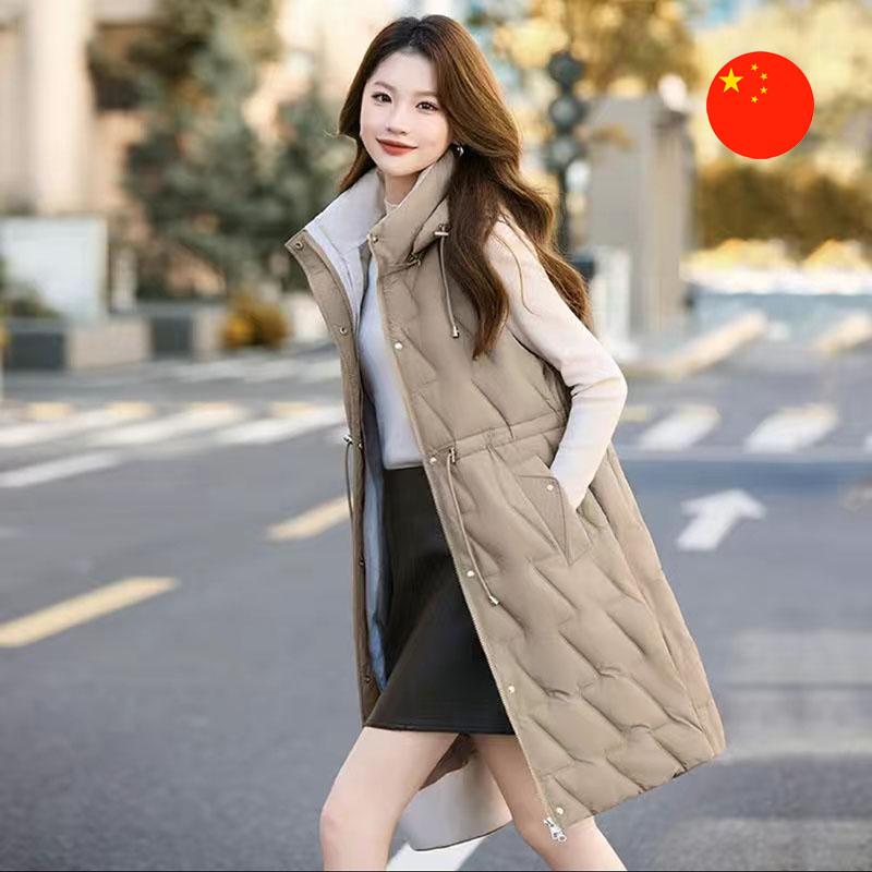 • Aýratynlyklary: Salkyn güýz we gyş üçin köp gatlakly gündelik geýim iň amatly elementi. Owadan reňkdäki uzyn tikinli žilet ýeňilligi, ýylylygy we owadanlygy (elegantlygy) utgaşdyrýar. Ony switerler, kapýuşonly koftalar, wodolazkalar we balaklar bilen aňsatlyk bilen utgaşdyryp bolar.